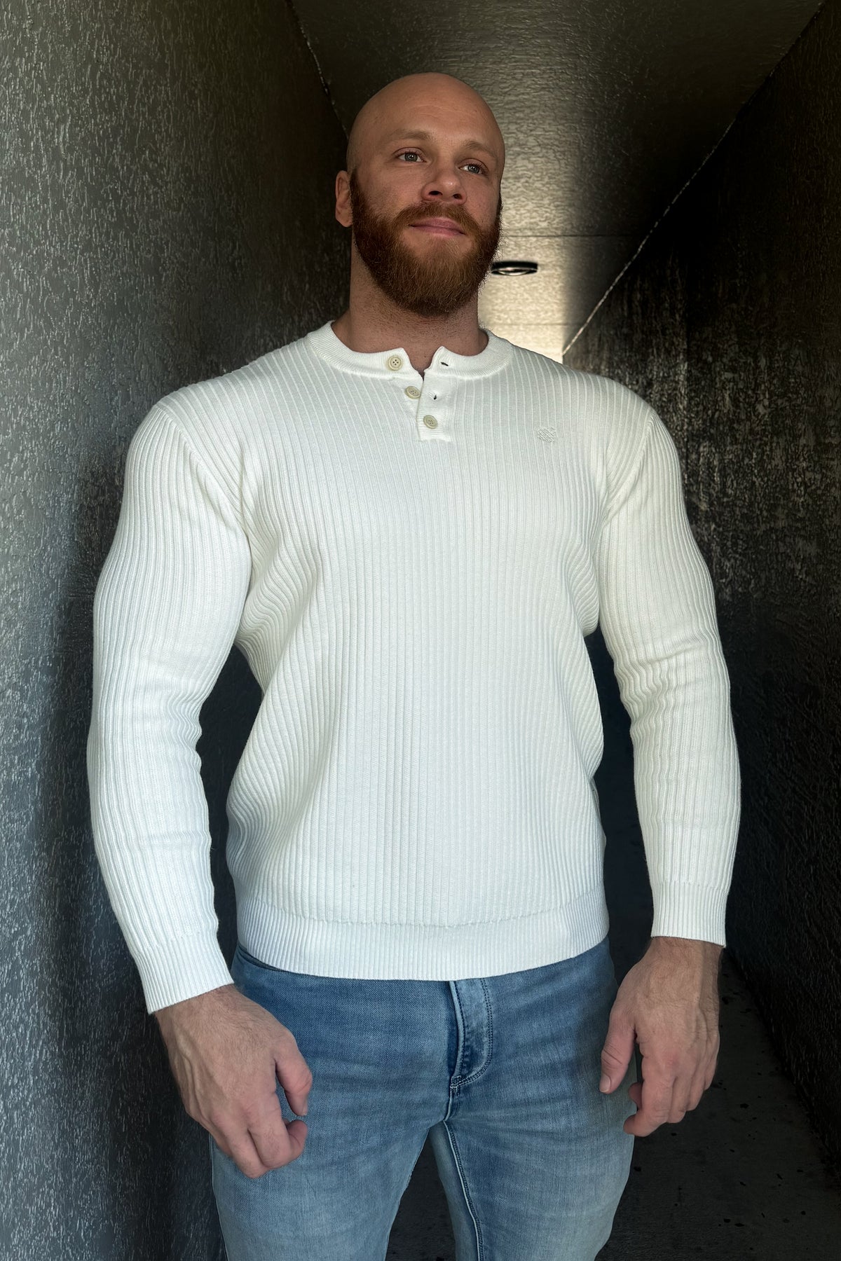 Classic Henley Sweater - Cream