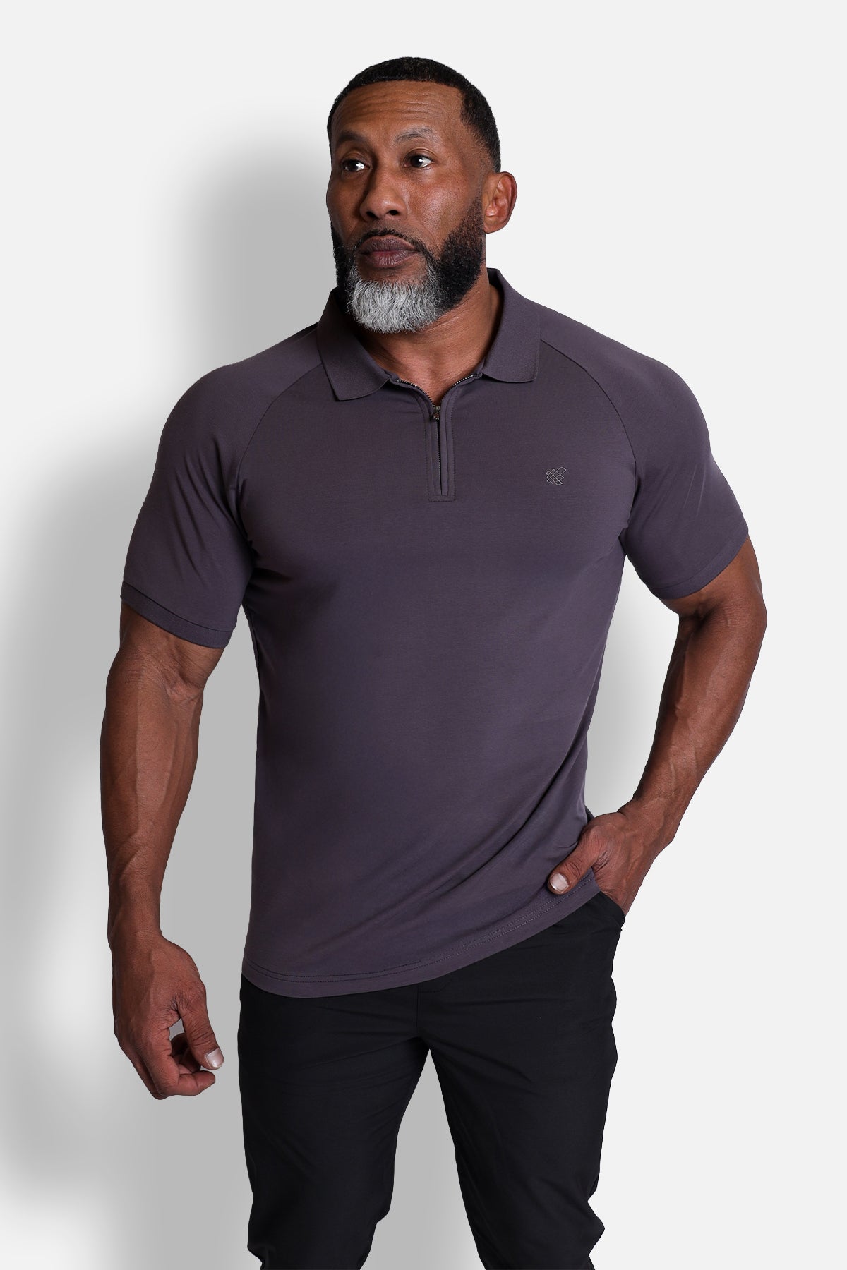 Zip-Up Muscle-Fit Collared Tee - Gray